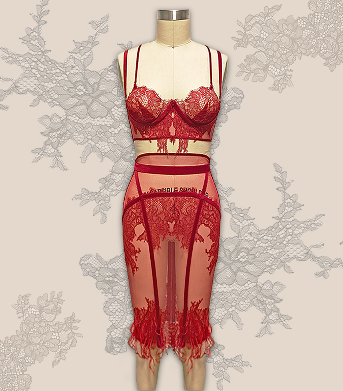 Next Image 1_Vega_Chelsea First Ensemble – Front View, sheer illusion bra & control-slip skirt w/ applique lace
